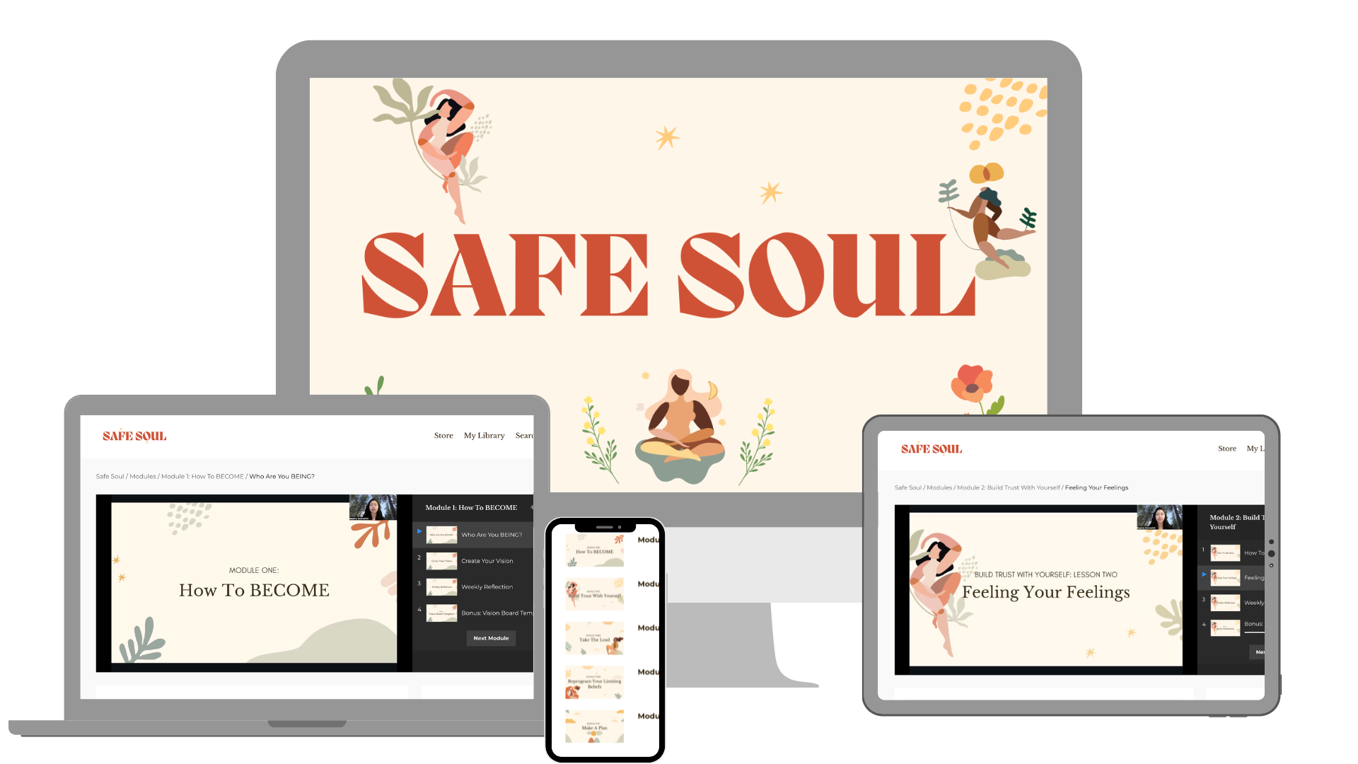 When you enroll in Safe Soul youāll get LIFETIME access to pre recorded supportive video lessons, insightful workbooks + BONUS healing guidesĀ